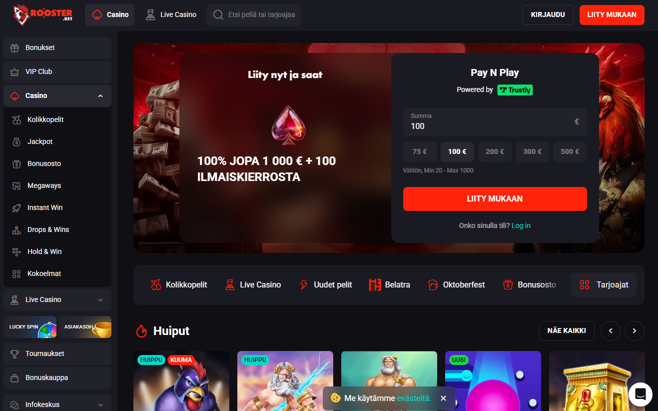 RoosterBet delivers what Finnish Pay N Play players expect: quick banking, a regulated environment, and a strong selection of games. While bonus terms are on the stricter side and withdrawal times may occasionally stretch, the casino’s transparency under Estonian licensing adds credibility.