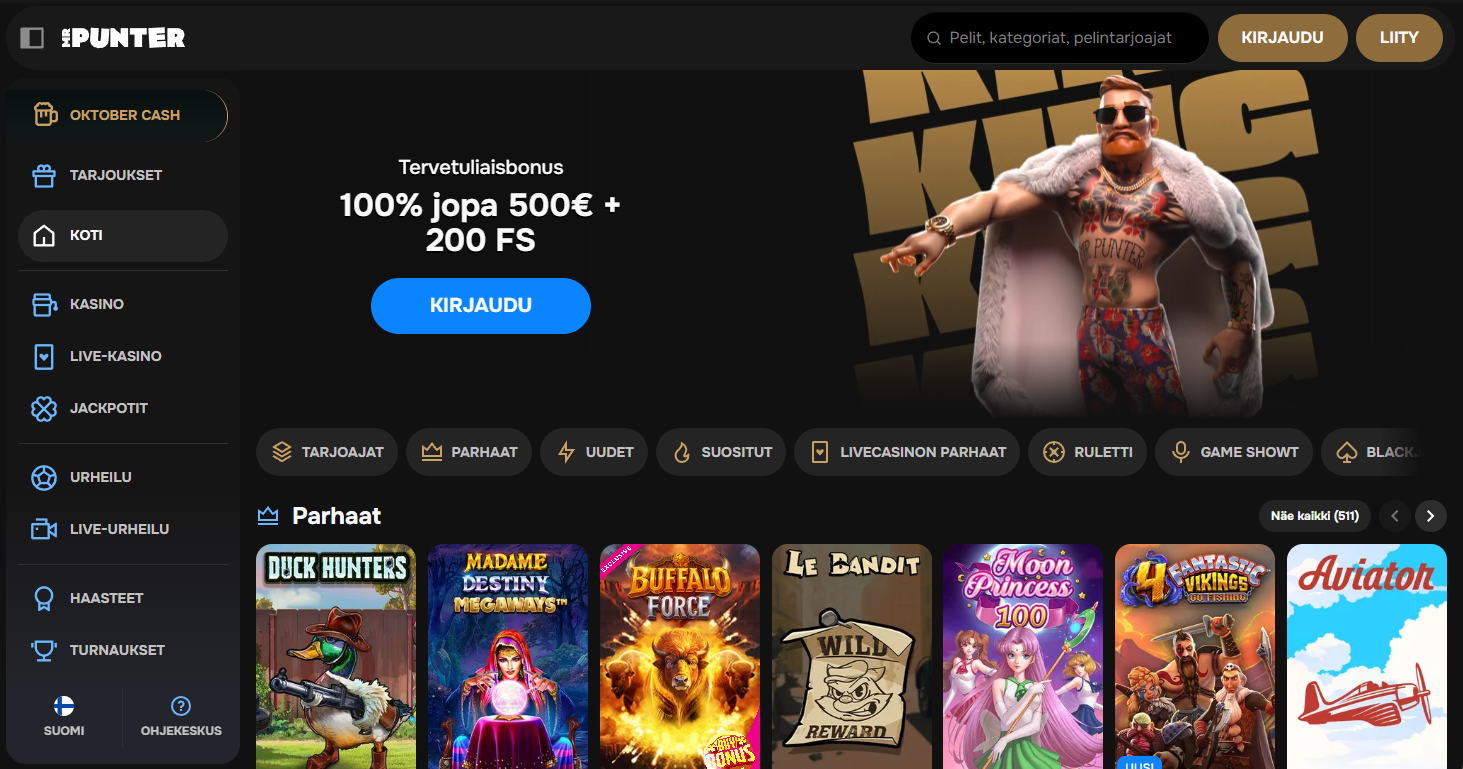 Launched in 2024, MRPunter Casino is an online casino and sportsbook operating under a Curaçao license. It combines casino games and sports betting in a sleek, modern interface. With secure SSL encryption, diverse payment methods, and an extensive game collection, MRPunter is an appealing choice for Finnish players.
